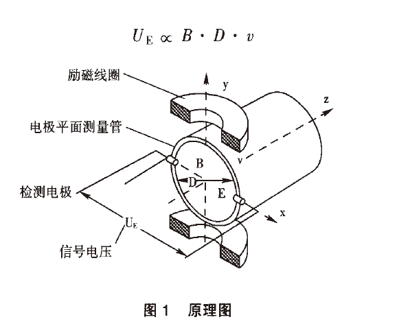 自來水流量計的基本原理是以法拉*電磁感應(yīng)定律為基礎(chǔ),即導(dǎo)體在磁場中作切割磁力線運(yùn)動時,在其兩端產(chǎn)生感應(yīng)電動勢。該原理用于測量管道內(nèi)流動的導(dǎo)電性流體。導(dǎo)電性液體在垂直于磁場的非磁性測量管道內(nèi)流動,并且流體流動的方向與磁場方向相垂直(見圖1),