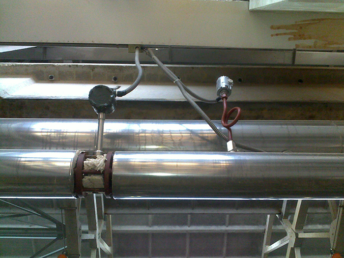 4、管道采取減振動措施。傳感器盡量避免安裝在振動較強的管道上,特別是橫向振動。若不得已要安裝時,必須采取減振措施,在傳感器的上下游2D處分別設置管道緊固裝置,并加防振墊。