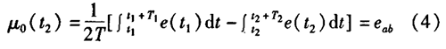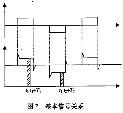 制藥廠污水流量計(jì)一般都采用工頻交流電源供電,其電源電壓的幅值和頻率的變化都會(huì)給制藥廠污水流量計(jì)帶來電源性干擾噪聲。對電源電壓的幅值變化,因采用多級集成穩(wěn)壓,一般而言電源電壓的幅值變化對電磁流量的測量精度影響不大。當(dāng)電源電壓的頻率波動(dòng)時(shí),雖然其波動(dòng)范圍有限,但對制藥廠污水流量計(jì)測量精度影響較大。為了解決工頻干擾問題,實(shí)現(xiàn)對流體流速感應(yīng)電勢e柚信號(hào)的準(zhǔn)確測量,需利用以下基本關(guān)系:①勵(lì)磁周期為工頻周期的整數(shù)倍,即勵(lì)磁頻率為50/nHz(n為偶數(shù));②正負(fù)勵(lì)磁下的同相位采樣。圖2是對應(yīng)低頻矩形波勵(lì)磁形式下的典型電勢信號(hào)形式,按上述關(guān)系在一個(gè)勵(lì)磁周期下,若假設(shè)t。和t:點(diǎn)為工頻干擾的等效干擾點(diǎn),且采樣寬度T=T1=T2,則e –ab的基本算式為:,