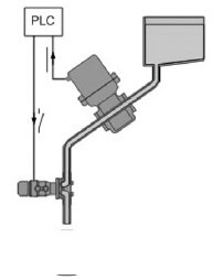 在灌裝系統中用到快速切斷閥(定量閥)來控制灌裝的啟停。快速切斷閥的控制原理:當電磁閥接收到PLC的輸出信號(由PLC采集灌裝流量計的脈沖信號后處理的輸出信號)時開始動作,通過執行機構帶動閥桿和閥芯向上運動,閥芯和閥座分開,流體通過閥座進入灌裝管道,開始灌裝,當電磁閥接收到PLC輸出信號關閉閥門時,閥桿向下運動,帶動閥芯向下運動,使閥芯和閥座接觸,從而切斷流體達到結束灌裝。本應用中控制閥的閥桿在管道中,流體從上向下流經整個閥體,閥桿的動作行程分兩級,對應于小流量和較大流量。