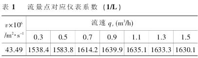 實(shí)驗(yàn)測(cè)得在流體介質(zhì)的粘度為43.49cSt條件下,DN10口徑的渦輪流量傳感器在各個(gè)實(shí)驗(yàn)流量點(diǎn)的儀表系數(shù)Ki如表1所示。