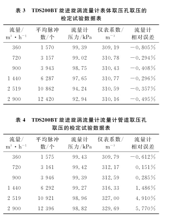 從以上數據表和曲線圖中可以看出:空氣流量計型號一定的情況下,用表體取壓孔取壓方式檢定流量計時流量計的線性度較好,用管道取壓孔取壓方式檢定流量計時流量計的線性度較差;流量測點相同的情況下,表體取壓孔取壓檢定方式的流量計誤差較小,管道取壓孔取壓檢定方式的流量計誤差較大;兩種取壓方式引起的誤差隨著流量的增大而逐漸增大,在流量為2 900m3/h時兩者相差近6.2%,遠遠超出了流量計的準確度等級。所以,在空氣流量計的檢定過程中,應避免在流量計表體取壓孔以外的地方取壓進行檢定。