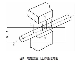 污水處理廠進水流量計是利用法拉*電磁感應定律設計的流量測量儀表,用于測量導電液體的體積流量。根據法拉*電磁感應定律,當導體切割磁力線運動時,導體內將產生感應電動勢Ex(圖1),方向根據右手定則確定,感應電動勢Ex的大小與磁場的磁感應強度B、傳感器管道的內徑D和流過導電液體的流速V成正比,B、D、V三者相互垂直,即Ex=BDV。