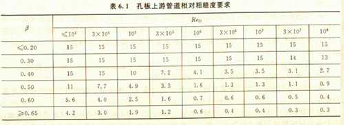 表6.1列出了天燃?xì)饬髁坑?/strong>上游管道相對粗糙度的上限值,單位是10'Ra/D,其中,Ra為偏離被測輪廓平均線的算術(shù)平均偏差。