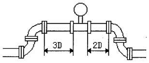 再將兩臺口徑為φ50mm和φ40mm鍋爐蒸汽流量計配裝整流器后,分別安裝在φ80mm工以管道上,且儀表上游尉為一個平面內兩個90°彎頭,變徑整流器前端與*二個90°彎頭距離為3倍工藝管內徑長段,進行水標定,工藝圖如圖3,實驗數據見表2