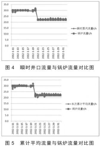 根據錐型孔板流量計在稠油 SAGD 的應用數據,將瞬時蒸汽流量與累計平均流量、瞬時干度與累計平均干度、瞬時蒸汽流量與鍋爐流量、累計平均流量與鍋爐流量、瞬時干度與鍋爐干度、累計平均干度與鍋爐干度、瞬時流量誤差與累計流量誤差、瞬時干度誤差與累計平均干度誤差繪成散點圖(圖 2 - 圖 5)。