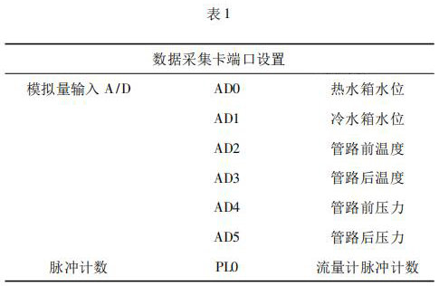 數據采集系統由工控機、化工污水流量計以及數據采集卡組成。 4000 次冷熱沖擊試驗要求在在*大流量 qs 條件下運行,對流量數據的采集用到化工污水流量計及數據采集卡。化工污水流量計采集管路流量,數據采集卡將化工污水流量計采集到的數據反饋給工控機系統。過程中,試驗管路水溫以及水箱水位的采集控制也是通過數據采集卡反饋給系統控制。試驗過程用到的數據采集卡采用研華生產的PCI - 1711。PCI - 1711 是一款多功能 PCI 總線數據采集卡,具有 16 路單端模擬量輸入功能、2 路 12位模擬量輸出功能、16 路數字輸入和 16 路數字輸出功能、計數器功能等。為保證冷熱沖擊試驗結果的準確性,嚴要求嚴格控制管路流量以及管路壓力。因此,管路設置前后管路溫度、冷熱水箱水位以及管路壓力的采集,管路流量根據化工污水流量計脈沖計數進行采集,其數據采集卡端口設置如表 1 所示。