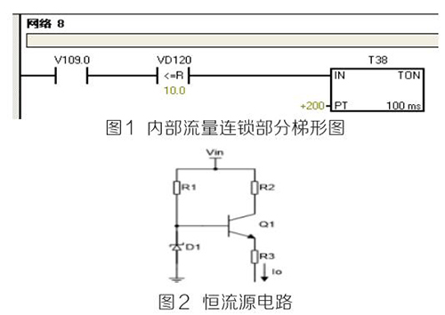 (2)PLC及模塊。PLC及模塊是自動化控制系統(tǒng)主要設(shè)備,且PLC及模塊屬于高集成高精密電子設(shè)備,保持室內(nèi)整潔舒適,可以提高自動化系統(tǒng)運行穩(wěn)定性。PLC及模塊硬件運行可靠,內(nèi)部控制程序是其控制核心軟件,如PLC硬件出現(xiàn)故障或損壞一般直接更換,但原內(nèi)部控制軟件無法上傳,整個控制系統(tǒng)成失控狀態(tài)。所以其內(nèi)部控制程序在調(diào)試驗收合格后應及時備份并做好標記,為以后修復PLC故障提供保障。PLC系統(tǒng)的維護技術(shù)人員需掌握一定基礎(chǔ)PLC控制邏輯原理,對準確判斷PLC故障點有很大的幫助。例如選礦廠水泵房S7-200系列PLC自動抽水系統(tǒng)出現(xiàn)如下故障 :觸摸屏能控制變頻器啟動水泵抽水,但在短時間內(nèi)會自動停泵,導致無法正常抽水。通過故障現(xiàn)象可初步判斷PLC及模塊硬件設(shè)備正常,主要由于某個變量有問題導致連鎖停機。打開備份PLC控制梯形圖程序進行相關(guān)分析,原來是水流量計瞬時流量數(shù)值做了連鎖,其在一定時間內(nèi)瞬時流量不大于10m 3 /h時,自動停泵,電磁流量模擬量輸出電流值僅為4ma且無變化,確定水流量計有故障。可臨時應急維修,模擬量模塊輸入模擬電流值10ma~20ma之間一固定數(shù)值即可恢復正常運行。制作簡單恒流源電路代替水流量計輸出的模擬電流量,實現(xiàn)解決水泵無法正常運行的故障。
