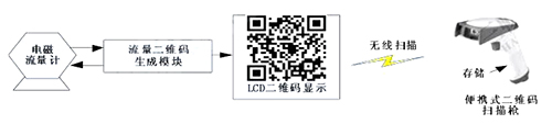 二維碼生成模塊定時向硝酸鈉流量計發送采集指令,后者收到指令后發送流量數據。