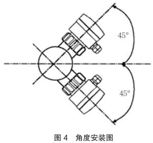 垂直安裝時確保流向由下而上,如圖 4 中箭頭所示,應(yīng)與管道水平中心線成 45 度角安裝智能型電磁流量計。