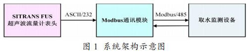 西門子 SITRANS FUS 外夾式水煤氣流量計的標準表頭支 持 4- 20mA 電流信號輸出,而水利部門的取水監(jiān)測設(shè)備應(yīng)用層 采用的是 Modbus 協(xié)議,物理層采用的是 RS485 標準,無法與SITRANS FUS 流量計的表頭通信。針對這一問題,本文自主設(shè) 計并實現(xiàn)了一種支持 Modbus 協(xié)議的通信模塊,使得超聲波流量計表頭與取水監(jiān)測設(shè)備可以以 Modbus 協(xié)議進行通訊。