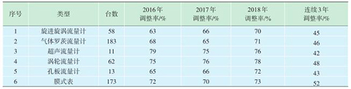 在2017年的工作基礎上,對2018年送檢的氣體流量計進行了抽查,并按不同類型進行了統計(表2)。