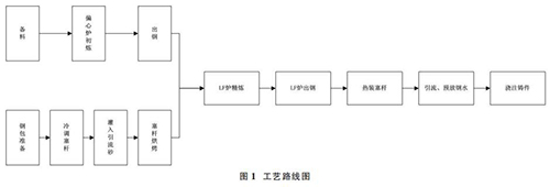1.1 偏心爐+LF 爐雙聯冶煉工藝,鋼包冷調、熱裝防爆渦街流量計工藝路線圖簡介如圖 1。