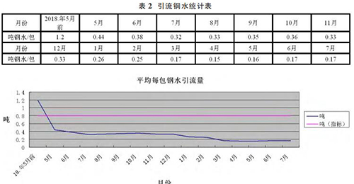 ④通過建立聯動考核機制使得員工作業質量得到明顯提升。綜上所述,通過有針對性的改進后,引流鋼水量大幅下降 80%,鋼水利用率上升 3%。
