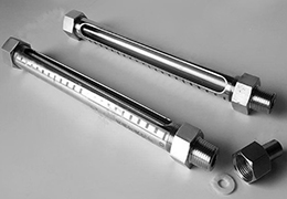 玻璃板、玻璃管液面計為直觀液位測量儀表,用來直接或間接地指示各種塔、罐、槽、箱等容器的液面位置(油、水、酸、堿、鹽等各種介質)儀表兩端各裝有一個針型閥,當玻璃管發生意外事故而破碎時,針型閥在容器壓力作用下自動關閉,以防止容器內介質繼續外流。