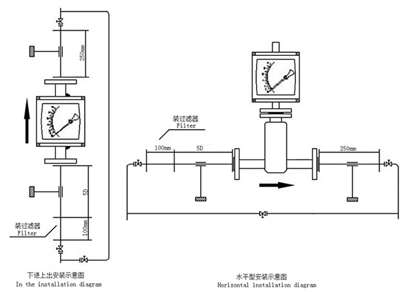 4.若介質(zhì)中含有固體雜質(zhì),應(yīng)在閥門和直管段間加裝過濾器;若介質(zhì)中含有鐵磁物質(zhì),應(yīng)在金屬浮子流量計的上游安裝磁過濾器。