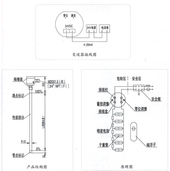 而且正確的接線要求是:正對正,負對負,這個在接線端子上都有清晰的標注。將磁浮球液位計配上報警開關,改為開關量遠傳出去,這時也可以接二次儀表,也可以直接接氣動泵閥,控制起動停止。連接方式肯定是一樣的。除正確的接線要求外,還應注意一些細節問題,如:磁性液位計在配線時應避開大容量變壓器、電機和干擾源,因為這些都會影響磁性液位計接線時的誤差。對某些防爆型的,為了保證防爆性能,因此必須有一定的配線規則。