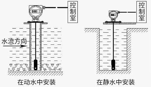 纜式靜壓液位計(靜壓式水位計)通常投入直徑大于水位計直徑的的PVC管、鋼管,管道固定在水中,不同高度打若干小孔,以便水通暢進入管內。或者在底部加裝阻尼裝置,以過濾泥沙和消除動態(tài)壓力和波浪對測量的影響。